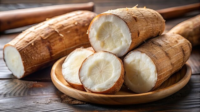 Close up of boiled cassava , food, root vegetable, starchy, white, healthy, organic, farm fresh, natural, traditional