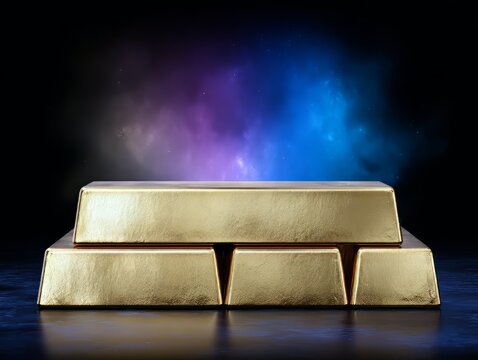 gold bars with colorful space background