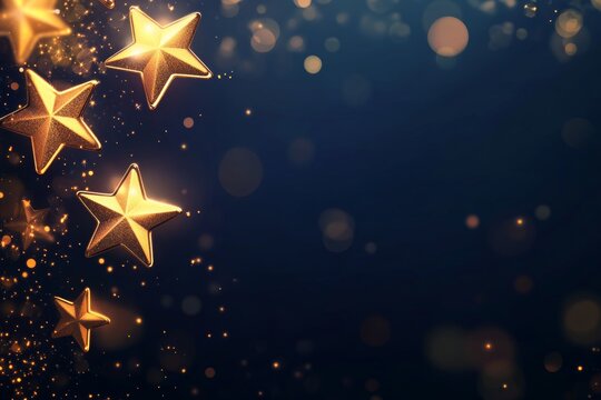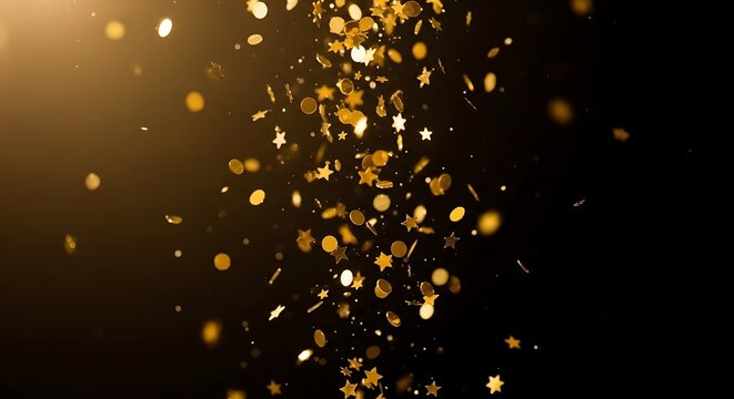 Shimmering golden confetti, glitter, stars falling, festive joy