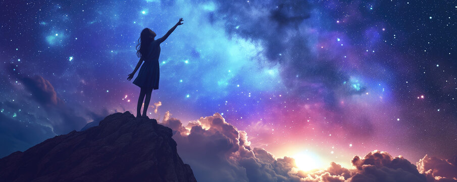 silhouette of a man standing on the shore of the beach looking at the starry sky over the pacific ocean