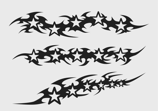 Retro Stars 60s, 70s hand drawn line stars set. Doodle clipart
