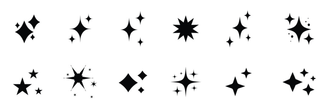 Set of sparkles star icons.Rating star .Bright vector stars.Flash,shine sparkle icon,glare,light,blink star. Modern simple black stars collection.