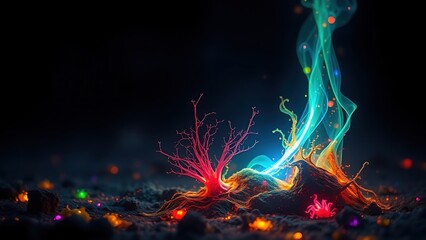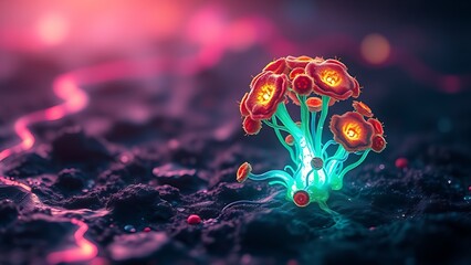 A glowing malignant growth being starved of its vibrant nutrient streams on a dark field.