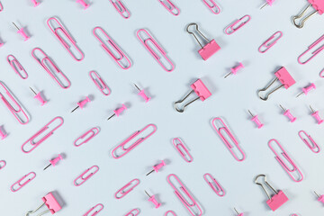 White background with various stationary items arranged as a border along the bottom, creating a clean and minimalistic workspace theme.