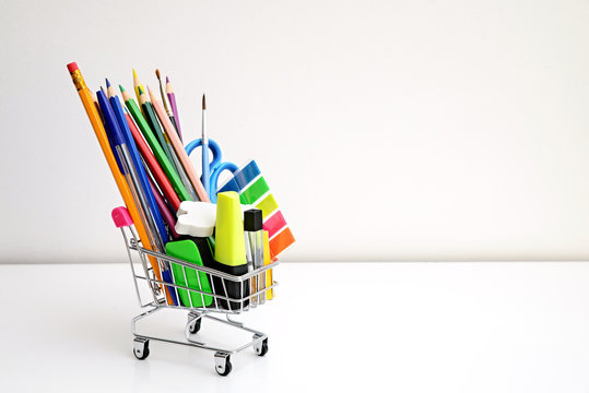 School stationery in the shopping cart photography