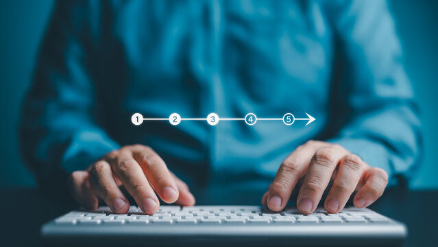 Professional businessman updating project status on whiteboard with colorful sticky notes during collaborative team planning meeting