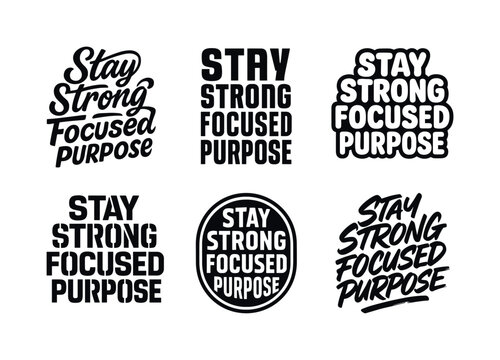 Harmonious Lettering Variations. Stay strong focused purpose. Set lettering. harmonious lettering variations of the same emblematic concept, each