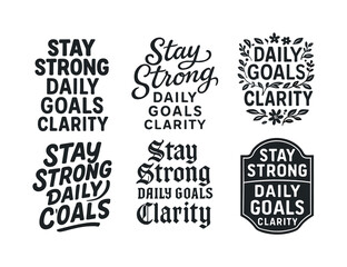 Dynamic Lettering Grid. Stay strong daily goals always. Set lettering. harmonious lettering variations of the same emblematic concept, each with different
