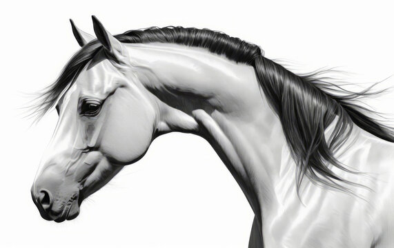 Monochrome Majesty A Striking Digital Art Portrait of a Noble Horse on White.