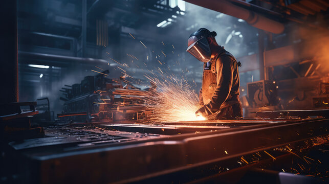 Steelworker Welding: Sparks and Precision in a Factory Setting