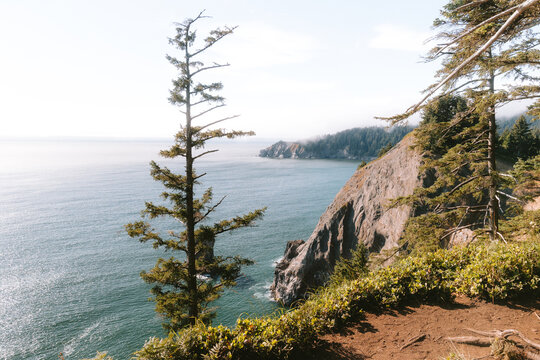 steep. A steep cliff jutting out from a smooth coastline into the deep blue sea, aerial view. travel magazines, destination branding, designed for travel destination branding.