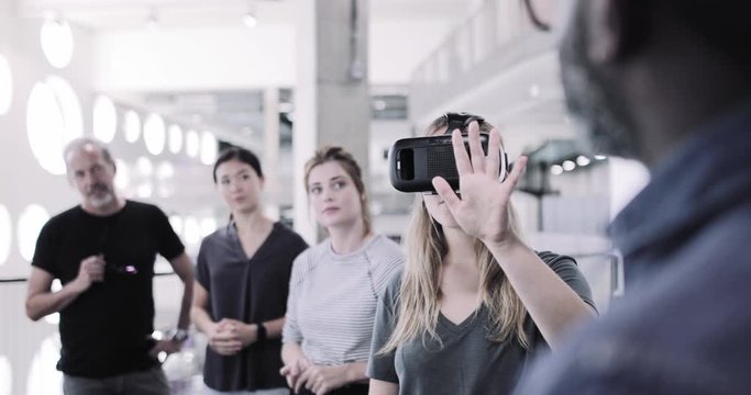 People queuing to try VR at a trade fair