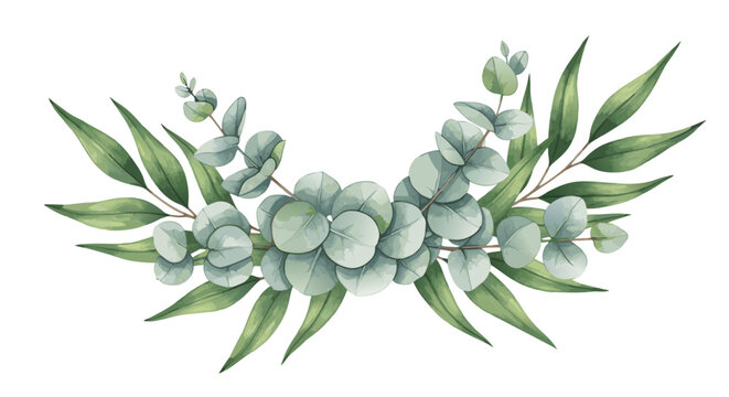 Minimalist Botanical Vector SVG Illustration with Eucalyptus Leaves in Green Flat Style for Floral Design