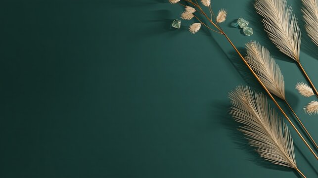 Diagonal Composition of Clear Diamonds and Golden Wheat on Deep Green