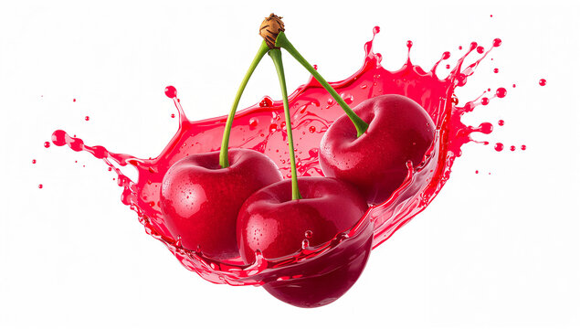 four distinct chocolate whipped cream dollops elegant swirls airy peaks one with two vibrant red cherries and green stems isolated on white background concept for culinary advertising