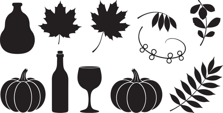 Autumn harvest elements collection silhouette