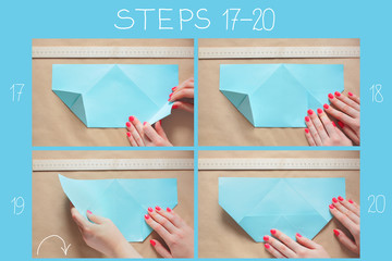 Step-by-step photo guide on how to make fox using origami technique. DIY concept