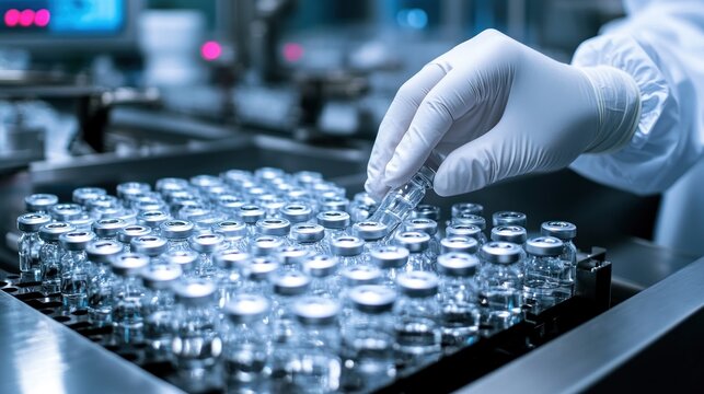 A sterile processing technician organizing surgical instruments on a table in a clean room environment