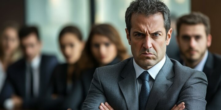 A stern businessman with crossed arms.