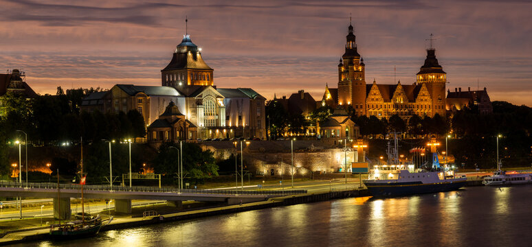 Night view on the Szczecin city, Poland