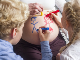 Children painting on pregnant mother's belly