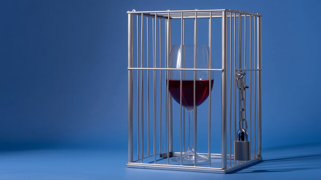 imagine on the right of the image a wine glass stood up, half full of wine and completely inside a locked, shiny metal cage with a padlock on the front so no one can get inside to