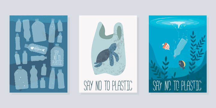 No plastic. Plastic bag crossed out in a red circle. Environmental protection. Ecology. Alternate plastic bag. Textile shopping bags. Illustration in flat style.
