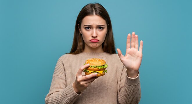 Fast food with a sign stop eating us: harmful ingredients, poor nutrition, wellness advocacy, eating habits, food awareness, health caution, diet improvement, processed meals, lifestyle choice