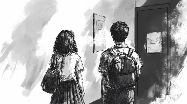 Black and white school day sketches: a visual narrative of youthful encounters and planning. Narrative Sequences. Illustration