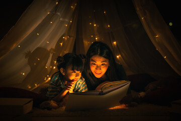 Father, kid and reading book for storytelling, happy with bonding at home and knowledge for education. Man, young girl and story time for fantasy and learning with love and care together in lounge