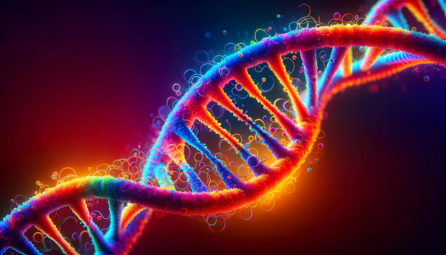 Colorful vibrant rainbow DNA helix strand on complimentary background wallpaper
