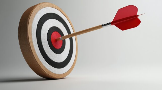 Bullseye Target with Arrow A dart hitting the bullseye of a target pinned to a corkboard, symbolizing achieving goals, focus, and strategic planning.