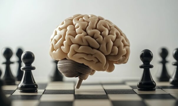 Chess grandmaster analyzing a board, strategic thinking and intellectual focus