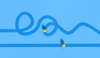 Straight line verses winding route. Path to success. Business strategic planning. 3D Rendering