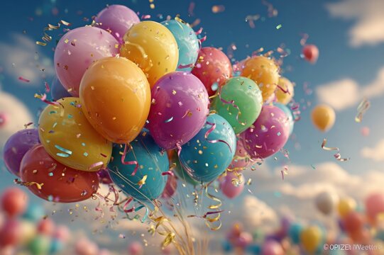 Colorful birthday balloons and streamers celebration