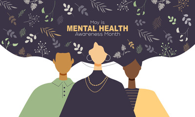 Mental Health Awareness Month. in May. Take care of your body, take care of your health and mind. Increase awareness of mental health. Control and protection. Prevention campaign