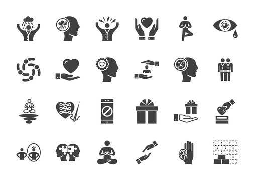 Mental Health, Wellness line icon set. Vector pictograms of well-being, group therapy, self-care, personal growth, support group, positive thinking, meditation thin linear illustration.