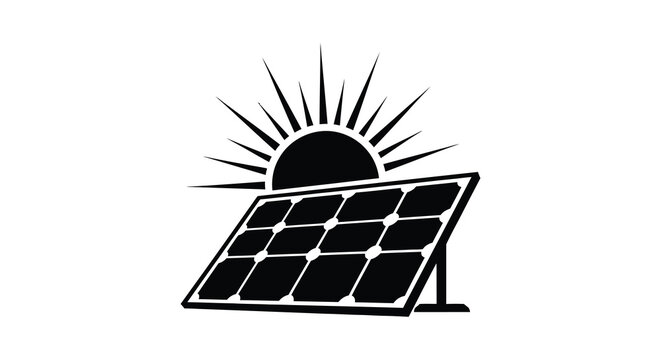 A striking solar panel graphic with a radiant sun burst presented as a bold silhouette