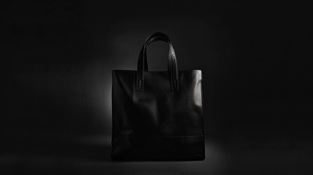 Monochrome tote, spotlighted, against a deep black void, striking simplicity