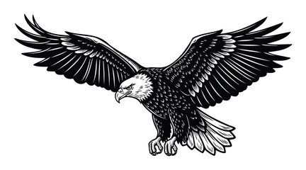Majestic bald eagle with spread wings preparing to land, a powerful symbol of freedom and strength perfect for branding, logos, and identity graphics