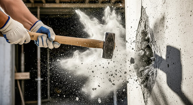 Close-up of a fist breaking through a cracked wall symbolizing strength and power dynamic and bold concept strong and determined