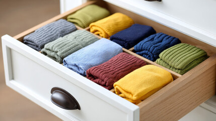 Efficient drawer organization with colorful compartment dividers for enhanced home storage solutions