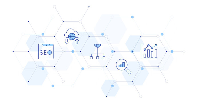 Local Business SEO with Schema Markup. Boost local SEO by using schema markup for business listings, reviews and events. Local search results enhanced by schema structured data vector illustration