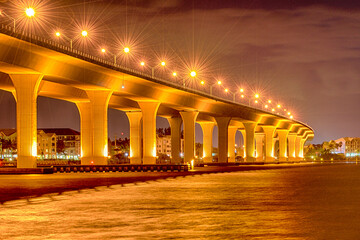 Sunset under the Roosevelt bridge in Stuart, Florida