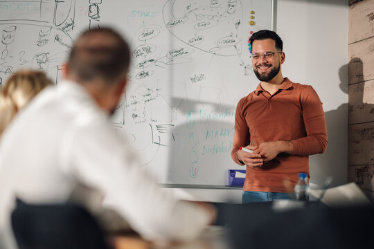 Young Lady is Writing on Flipchart during the Meeting of Business Team in the Office