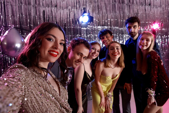 Young people taking selfie on prom night