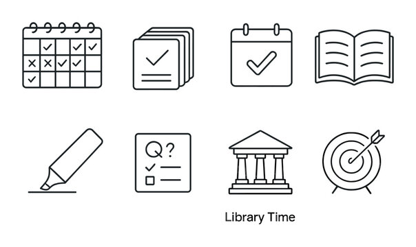Study essentials outline icons set – academic, education and learning symbols