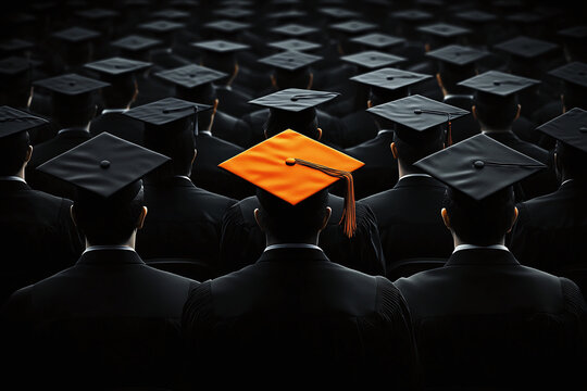 bright college student standing out among large crowd of average students, concept of genius academic student