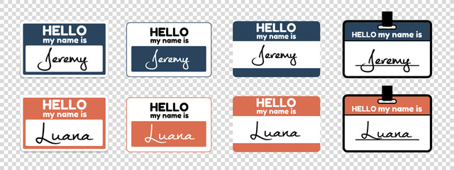 Name Badge, Paper Labels For Identification Students, Teacher And Speaker - Different Vector Illustrations Isolated On Transparent Background