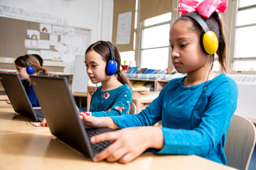 Students working on laptop computers